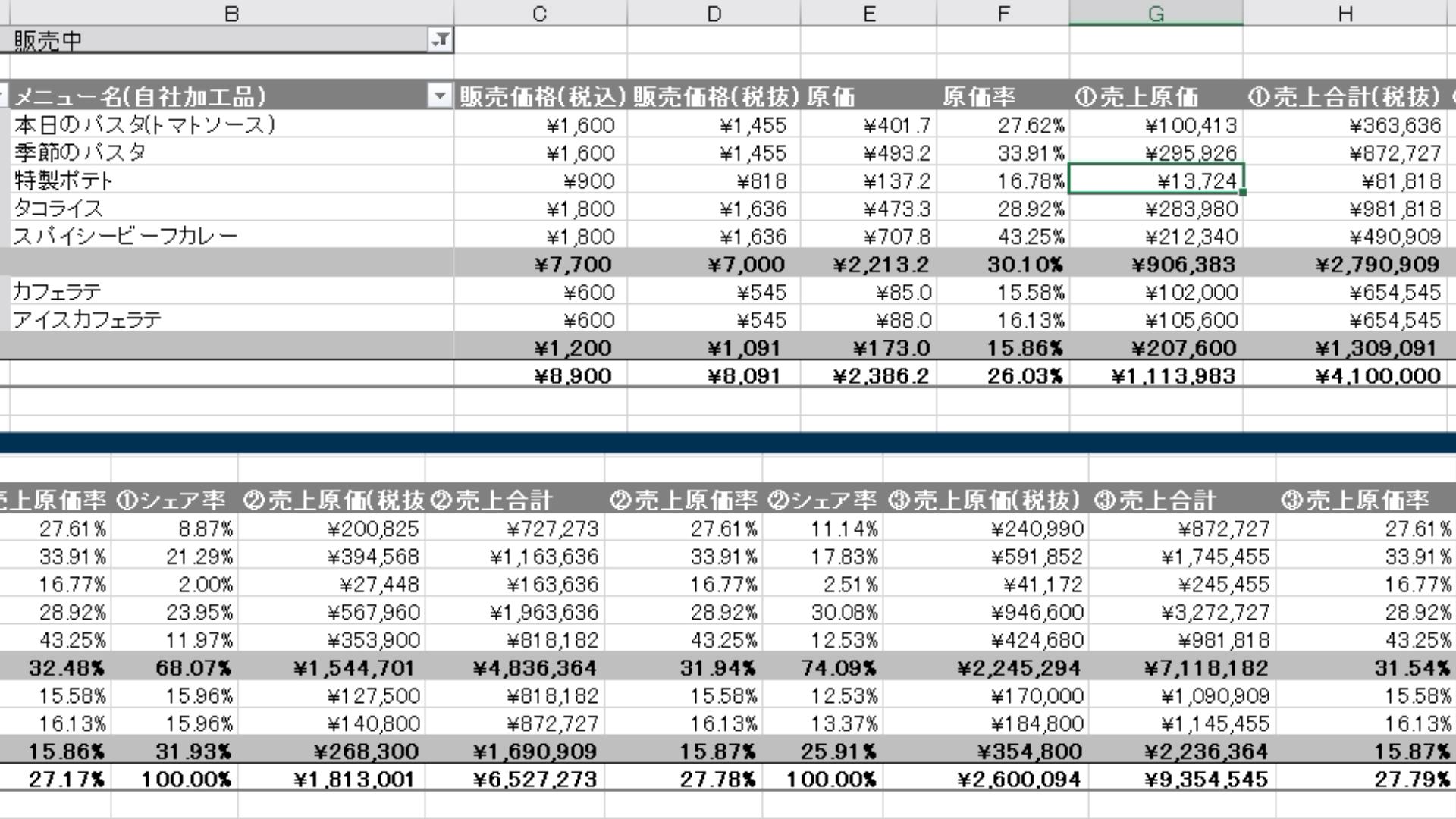 このエクセルファイルを使用すれば圧倒的に効率化された原価管理、レシピ管理をすることが可能になります。