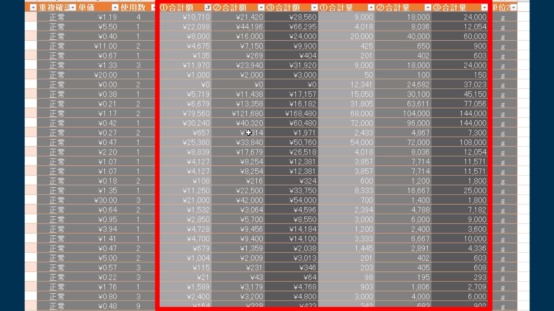 また実際の売上原価と比較するデータに用いたり、いくらでも応用することが可能です。
